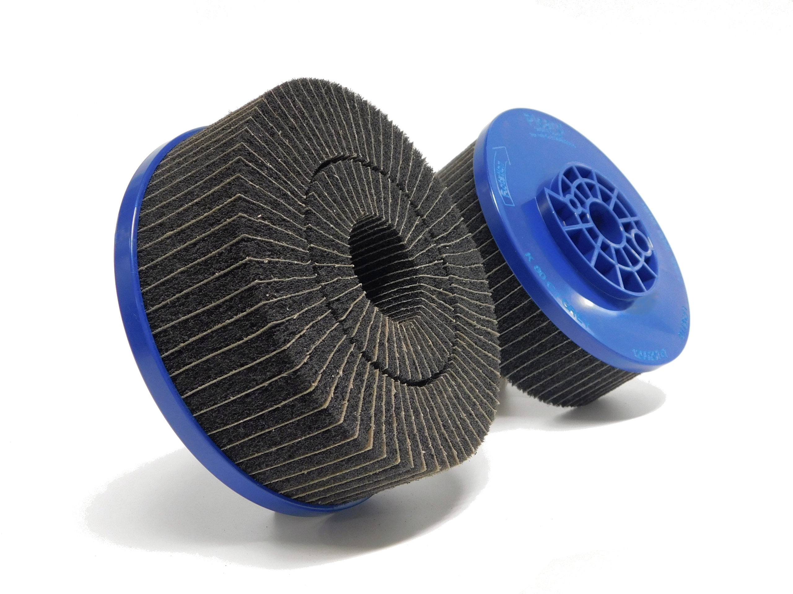 The deburring disc FAPI-FIT has abrasive cloth flaps on the front which are supported by abrasive fleece flaps. Due to the special position of the flaps, deburring discs FAPI-FIT can be produced individually for the respective machining process.