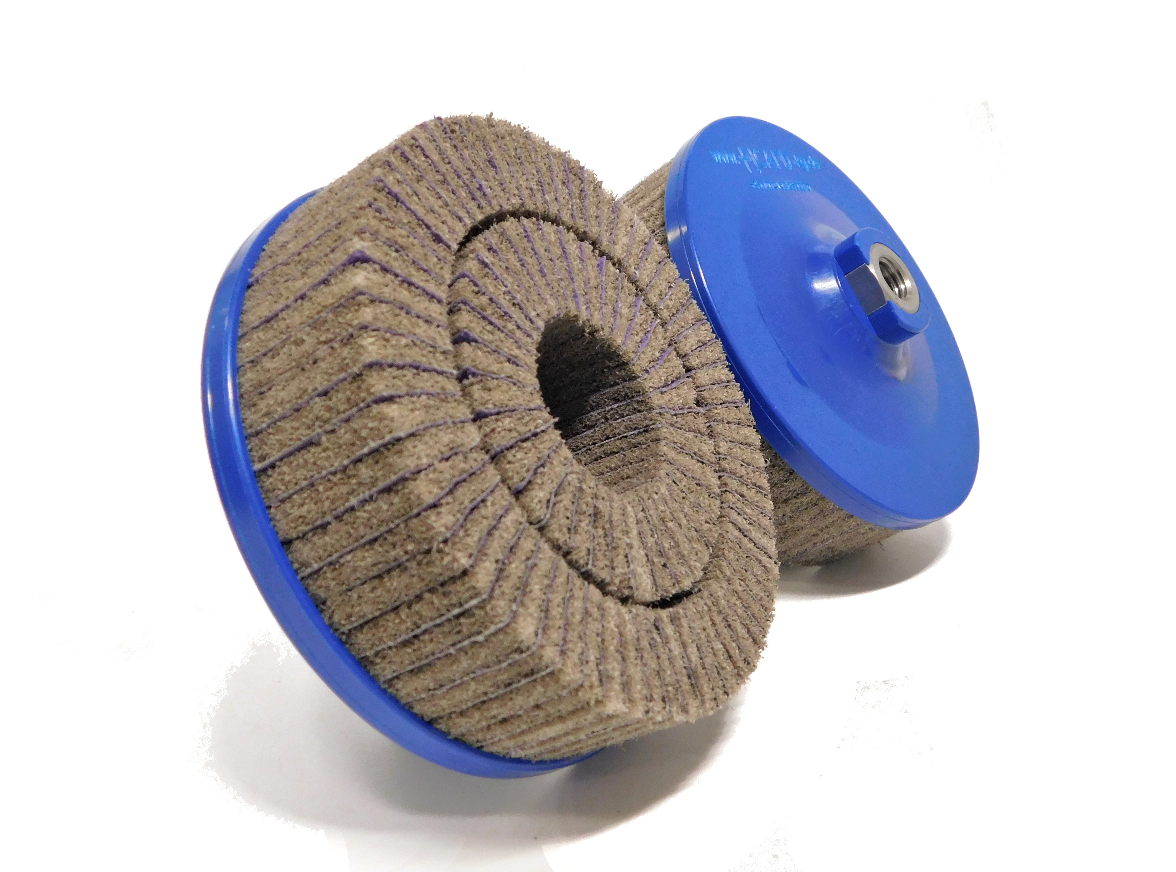 The deburring disc FAPI-M14 125 has abrasive cloth lamellae on the front side, which are supported by abrasive fleece lamellae. By special adjusting the lamellae it is possible to produce the deburring disc FAPI-M14 125 individually according to the respective processing.