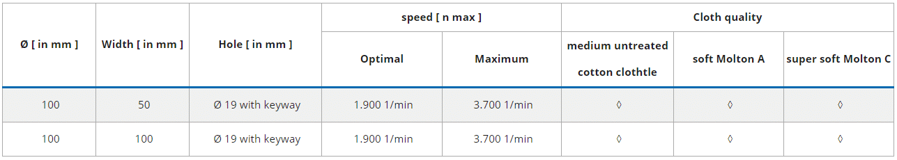 The design of the polishing rollers FAPI-GLAM prevents heat build-up in the tool and therefore burning of the selected cloth.