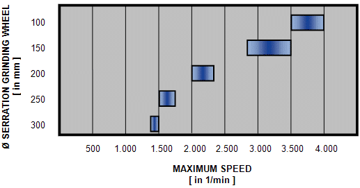 The maximum speed for the serration grinding wheel results from the diameter: