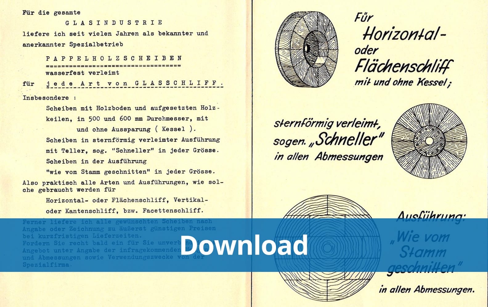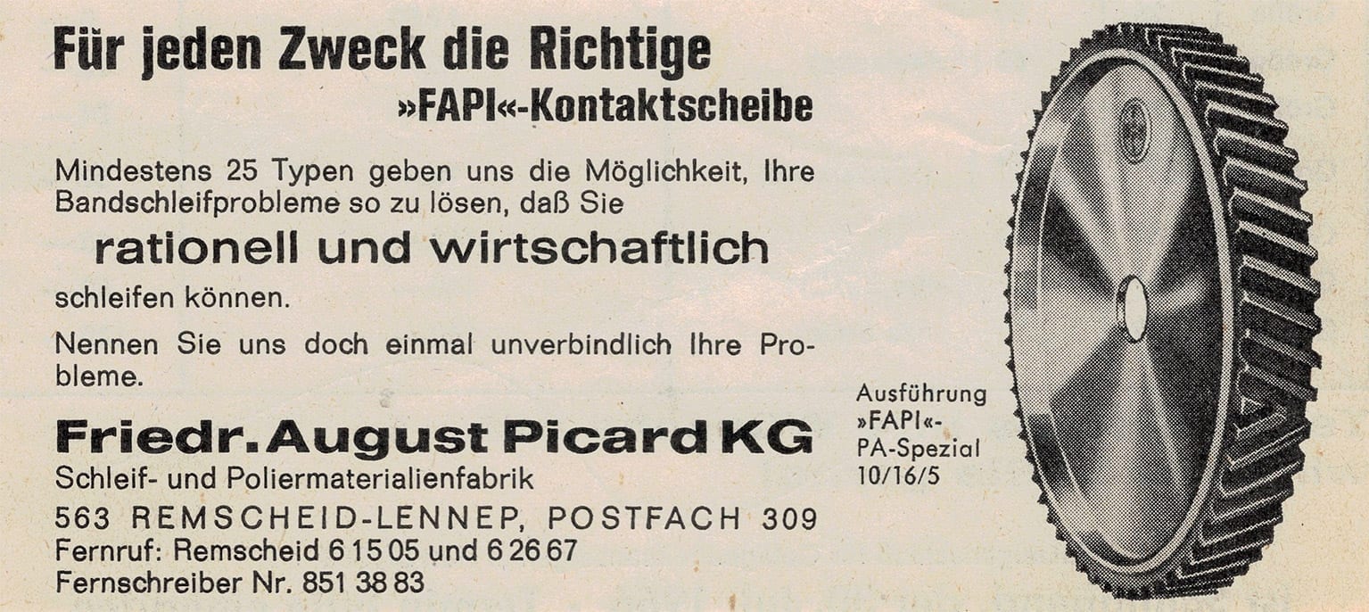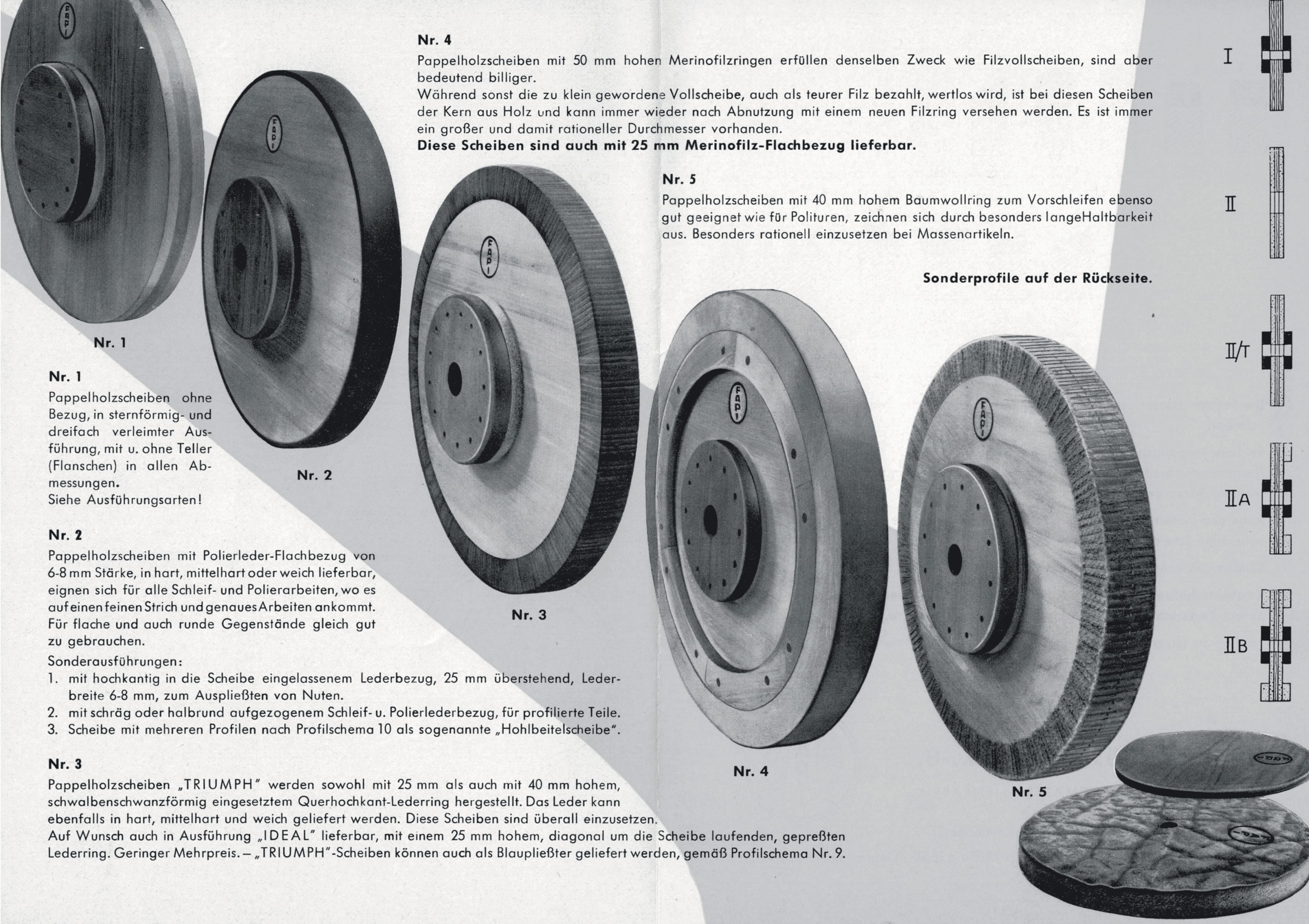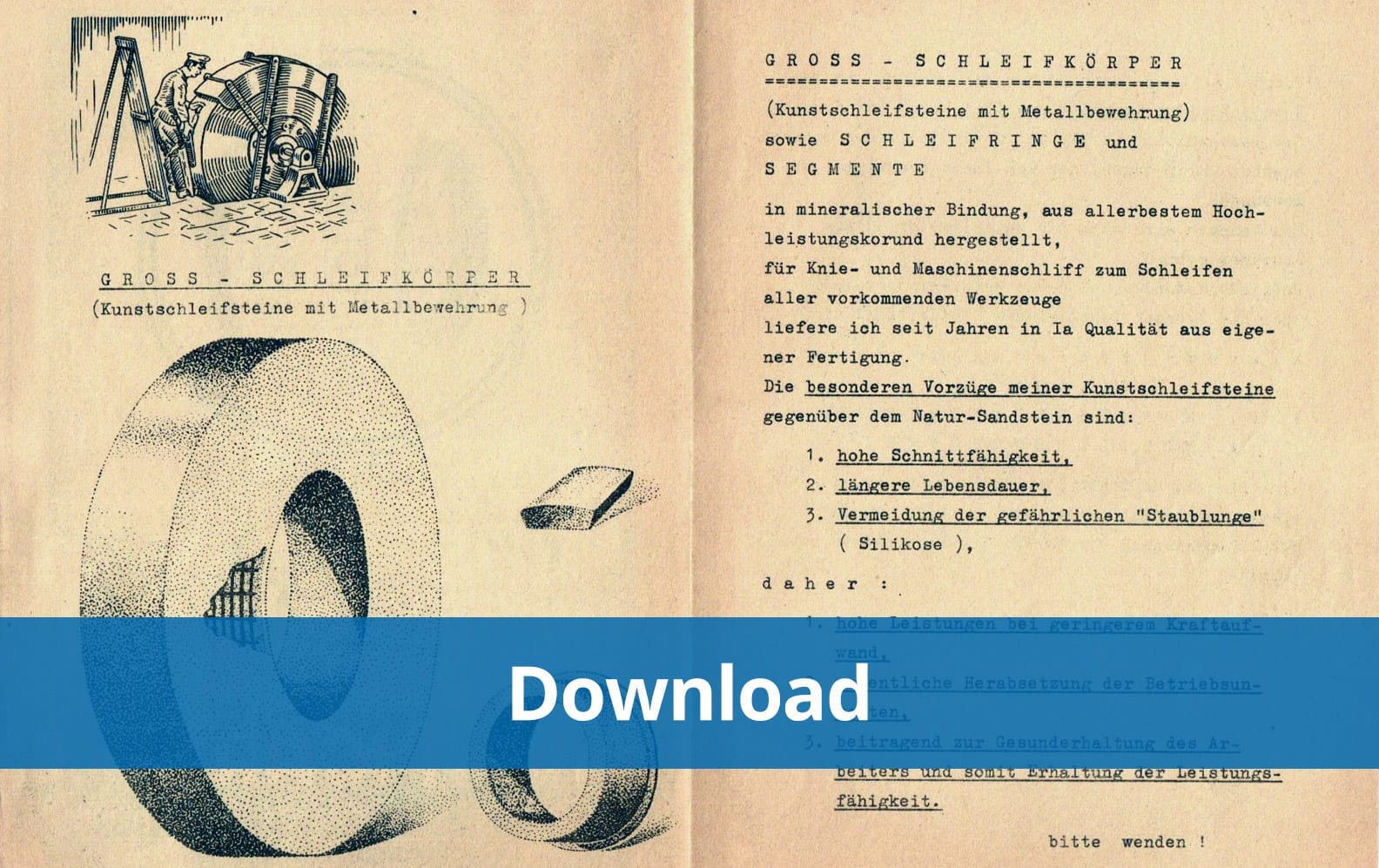 Nach dem Krieg kann die Weiterentwicklung gemeinsam fortgesetzt werden. Die Fertigung von Pappelholzscheiben und Schleifereizubehör wird in den dafür erworbenen Fabrikationsräumen in Remscheid-Lennep, Knusthöhe 21 aufgenommen.