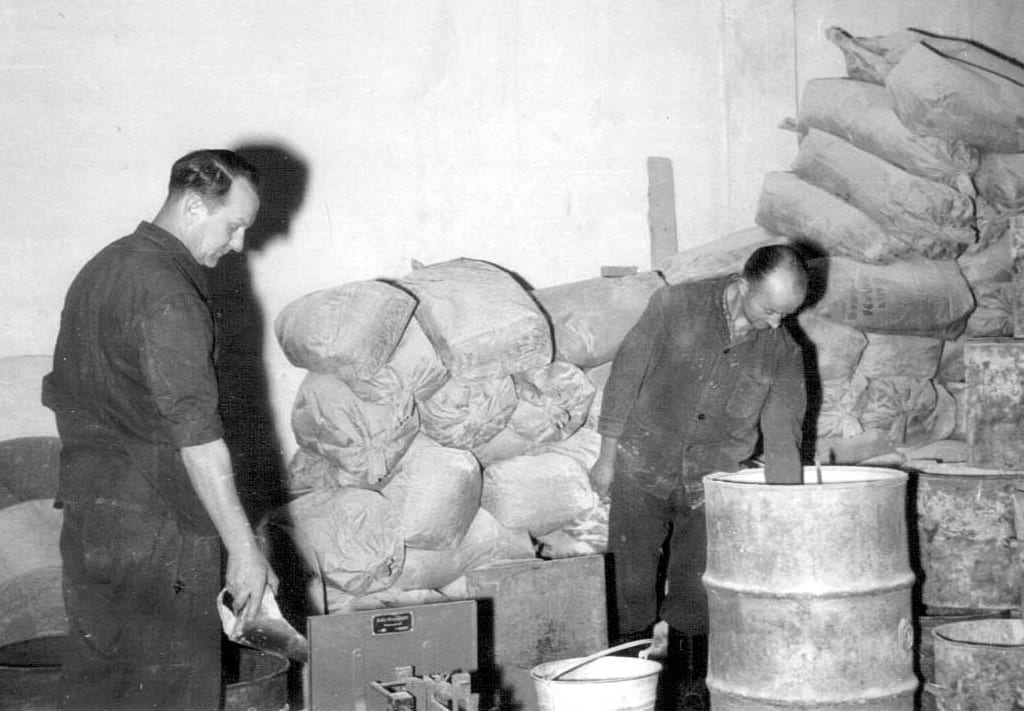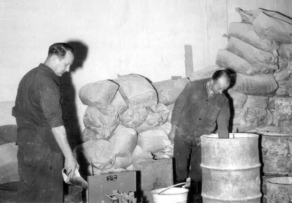 Mit Unterstützung eines stets treuen Mitarbeiterstammes wird die Produktionsstätte für Kunstschleifkörper aufgebaut, um so wieder Produkte in einer traditionsgemäßen Qualität liefern zu können.