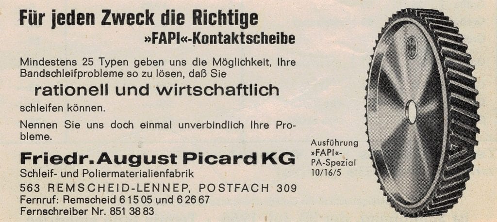 Das neuartige Profilschleifrad FAPI-FLEX für den Holzfein- und Lackzwischenschliff wird entwickelt und findet sehr großes Interesse in der Holzindustrie. Im gleichen Jahr wird eine Sisalkordel-Lederbürste vorgestellt, die bei der Nacharbeit von geölten und gewachsten Holzoberflächen ihren Einsatz findet.