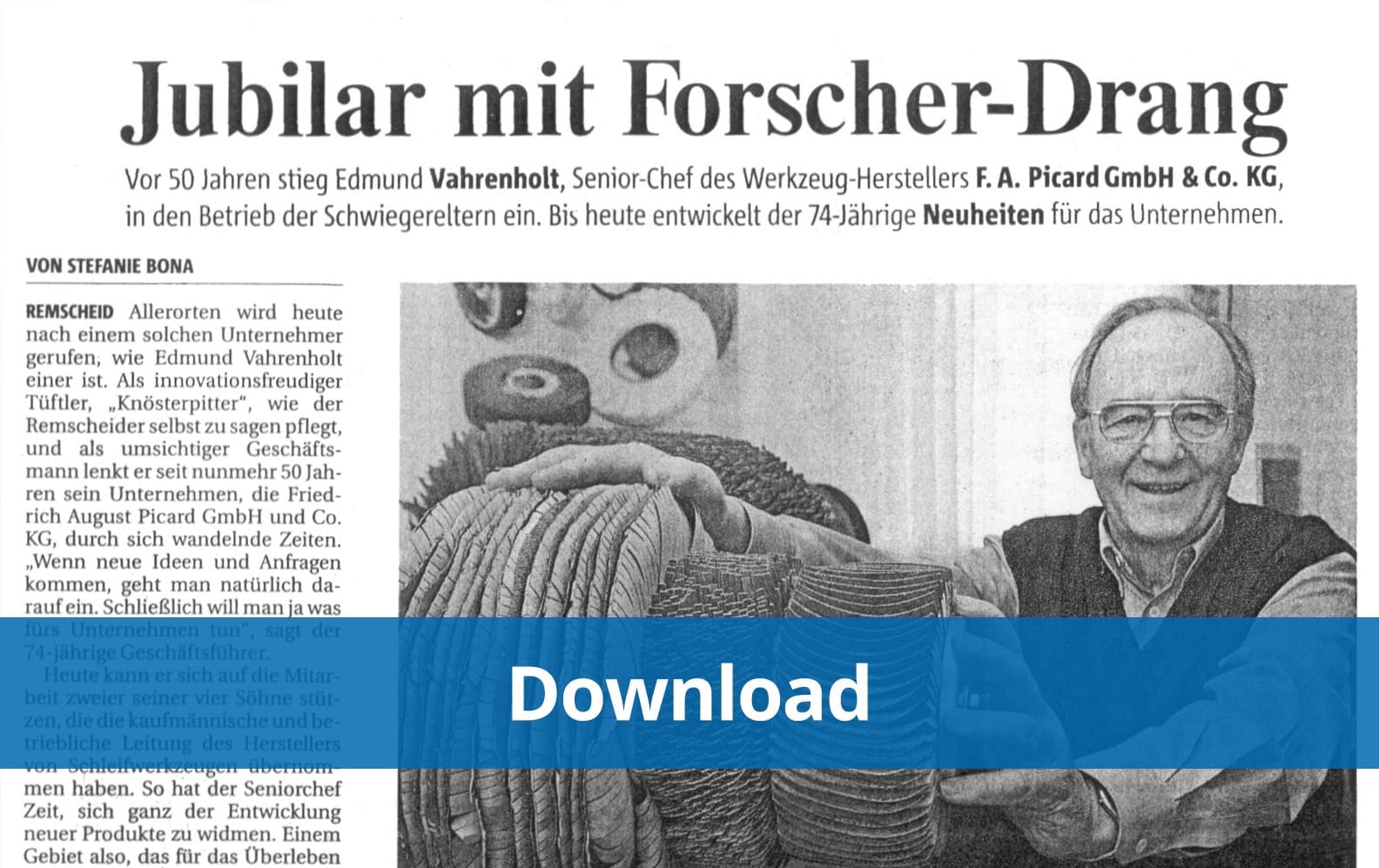 Seit nunmehr 50 Jahren ist Herr Edmund Vahrenholt für die Friedrich August Picard GmbH & Co. KG tätig. Zunächst als Angestellter und später, auf Grund seiner Verdienste für die Firma, auch als Teilhaber und Geschäftsführer. Am 15. März 2005 feierte Herr Edmund Vahrenholt sein 50-jähriges Jubiläum mit langjährigen Geschäftspartnern und der Belegschaft.