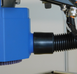 Eine direkt am Entgratschleifteller angebrachte Absaugung entfernt den anfallenden Schleifstaub.