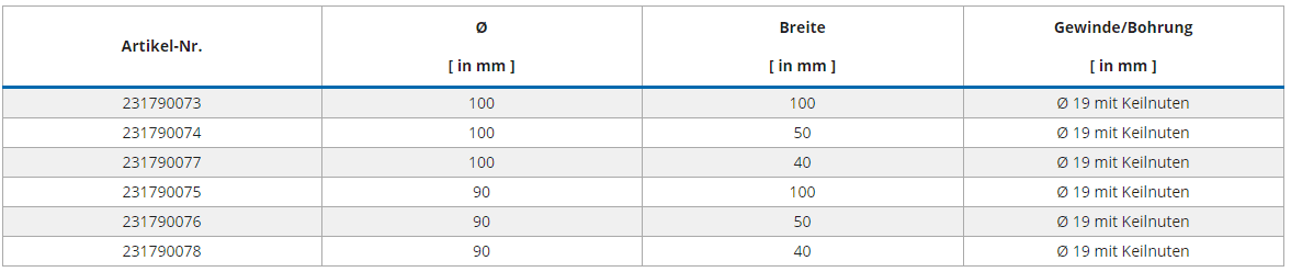 | 231790076 | 90 | 50 | Ø 19 mit Keilnuten |