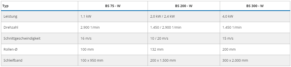 | Schleifband | 100 x 950 mm | 200 x 1.500 mm | 300 x 2.000 mm |