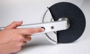 Der neue Kehlnahtschleifer FAPI-FINIT-EASY ist mit einer fast stufenlos verstellbaren Schutzkappe ausgerüstet. Mit einem praktischen Klick- und Schiebesystem lässt sich die Schutzkappe in einem Winkel von 90° schwenken. Hierdurch kann die Haube jederzeit mühelos in die optimale Position verstellt werden, wie auch immer man die Maschine dreht und wendet. Dies gewährleistet einen sicheren Gebrauch ohne Störung durch die Schutzkappe.
