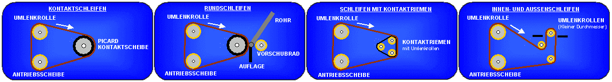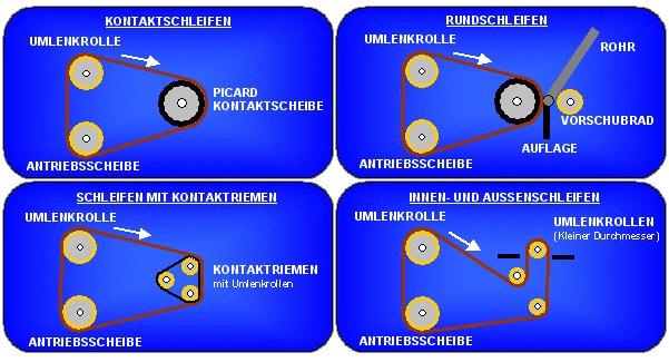Des Weiteren gewährleistet das Drei-Rollen-System der Kontakt-Bandschleifmaschine KS 100 eine gleichbleibende, optimale Bandgeschwindigkeit für Schleifbänder von 3.000 bis 4.000 mm Länge bei jedem Durchmesser von Picard-Kontaktscheiben.