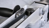 Der 1.700 Watt starke Antriebsmotor hat ein doppeltes Zahnradgetriebe mit sehr hohem Drehmoment. Um diese Kraft auf das Schleifband übertragen zu können, wird ein sehr resistenter Multi-V-Riemen mit eingebauter Rutschkupplung verwendet.