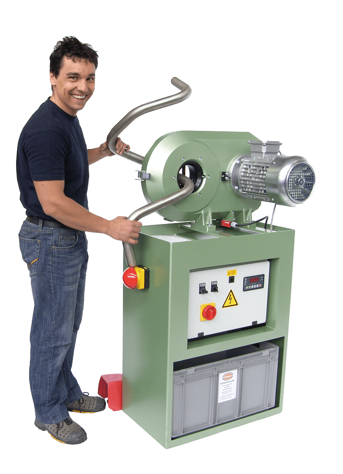 Die Rohrschleifmaschine ist geeignet zum Schleifen von Rohren mit kreisförmigen und elliptischen Querschnitten. Das Besondere ist, dass selbst gebogene Rohre auf diesen Maschinen geschliffen werden können. Durch die einfache Handhabungsweise, die Schnelligkeit und die Qualität bei der Arbeitsausführung wird die Rohrschleifmaschine zu einer unerlässlichen Maschine für alle Industriezweige mit Rohrbearbeitung.