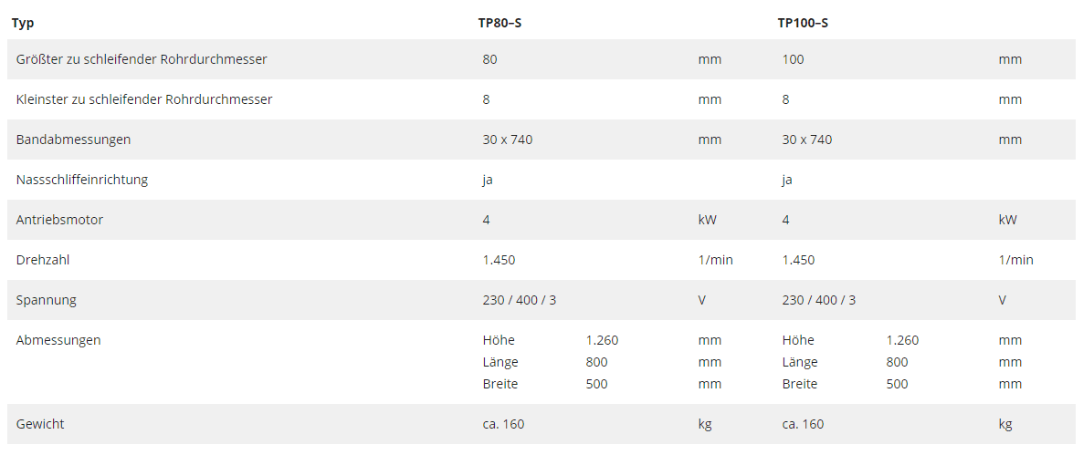 Größter zu schleifender Rohrdurchmesser 80 mm 100 mm