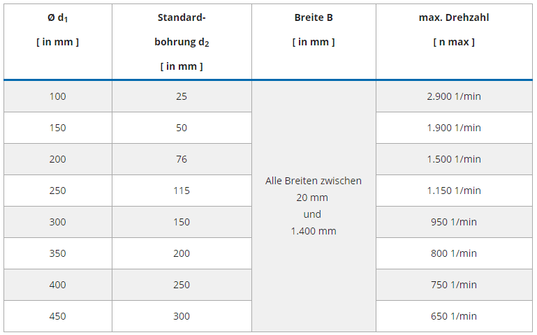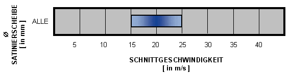 Um beste Ergebnisse zu erzielen, sollte die Geschwindigkeit bei 15-20 m/s liegen. Um eine perfekte Oberfläche am Werkstück zu erzielen, ist es empfehlenswert, die Satinierscheibe so langsam wie möglich bei leichtem Anpressdruck laufen zu lassen. Sowohl durch höhere Geschwindigkeiten als auch durch höheren Anpressdruck verringert sich die Standzeit der Satinierscheibe und die Werkstückoberfläche verschlechtert sich.