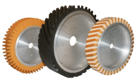 Um die volle Leistung der Schleifbänder Trizact™ zur Geltung zu bringen, ist die richtige Kontaktscheibe zu wählen. So sind zum Schleifen und Strukturieren Kontaktscheiben aus der FAPI-PA-Serie ohne oder mit kleinen Nuten mit 40 bis 65º Shore zu wählen. Für den Feinschliff bzw. zum Polieren ist die FAPI-VU-Serie oder idealerweise eine Lamellenkontaktscheibe aus der FAPI-VUS-Serie oder der FAPI-BW-Serie zu wählen. Grundsätzlich gilt, dass mit einer weicheren Kontaktscheibe ein besserer Ra-Wert erzielt wird.