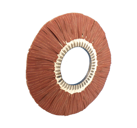 Beim Schleifstreifenring ist speziell ausgewähltes Schleifgewebe in geschlitzter Form unregelmäßig mit 6 bis 12 Lagen um eine Stahlringeinlage herum angeordnet. Mit diesem Besatz wird eine hohe Schleifwirkung erzielt. Zudem wird der Bearbeitungsprozess durch höchste Elastizität der Schleifgewebelamellen und damit einer optimalen Anpassungsfähigkeit an das Werkstück positiv beeinflusst.
