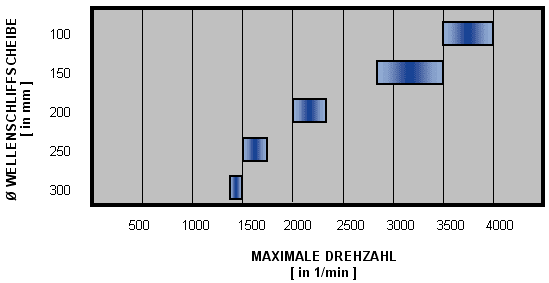 Die maximale Drehzahl für Wellenschliffscheiben ergibt sich über den Durchmesser: